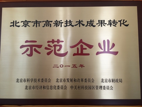 根據(jù)北京市科委、市發(fā)展改革委、市財政局、市經(jīng)濟信息化委、中關村管委會《關于組織開展2015年度北京市高新技術成果轉化項目認定工作的通知》,我公司申報《北京市高新技術成果轉化項目》以驕人的成績,榮獲2015年北京市高新技術成果轉化示范企業(yè),并于2015年5月獲得成果補貼100萬元整。